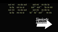 - Practica cantando esta pieza varias veces hasta que te suene familiar. Las primeras veces tendrás que hacerlo muy despacio, fijándote en cada nota mientras cantas. Luego puedes sustituir la escala “do re mi” por C D E para practicar la representación alfabética, utilizada en muchos países (incluyendo los países anglosajones).