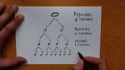 Aprende el valor de las ligaduras y los puntos. Mientras el corchete reduce el valor de una nota a la mitad, la función del punto es similar pero inversa. Con pocas excepciones (que no vienen al caso aquí), el punto se coloca siempre a la derecha de la cabeza de la nota. A una nota con punto se le aumenta la mitad de la duración del valor original de la nota.